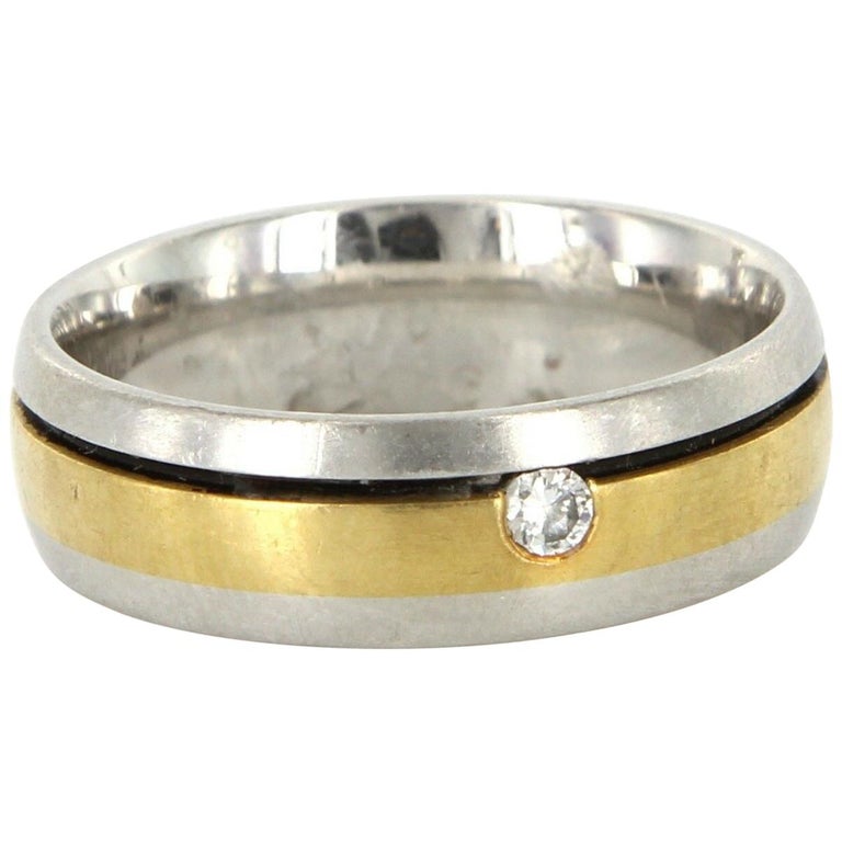 Estate Gelin Abaci Platinum 18 Karat Yellow Gold Diamond Men S Wedding Band For Sale At 1stdibs Gelin Abaci Mens Wedding Bands